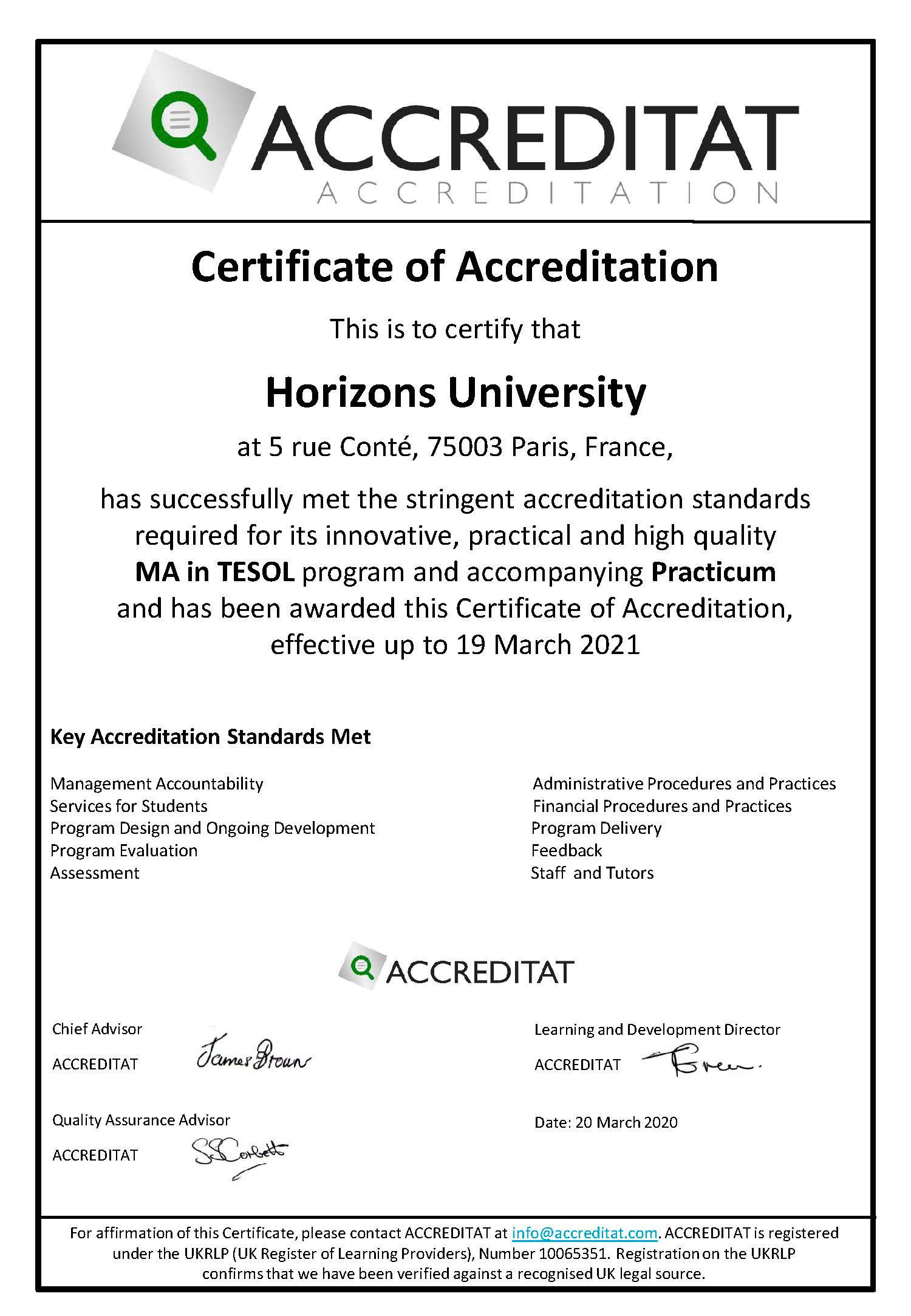 MasterTESOL is accredited at both the institutional and programmatic levels