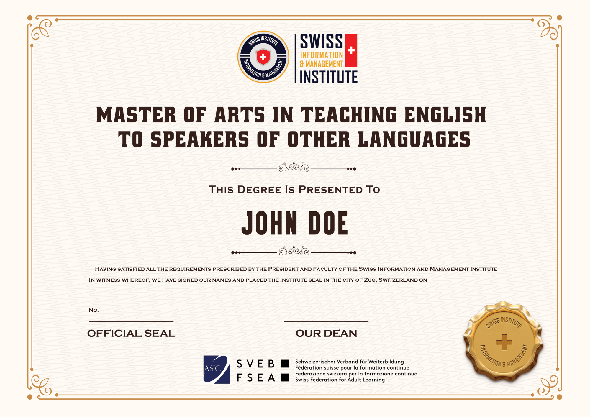 Master of Arts in TESOL from Swiss Information and Management Institute (Optional)